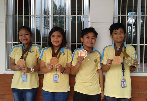 (fr:left to right) Charlize Lansangan, Alliah Mykah Agustin, Quenso Tambalque, Marcus Bernard Gonzales (Highest Individual Scorer)